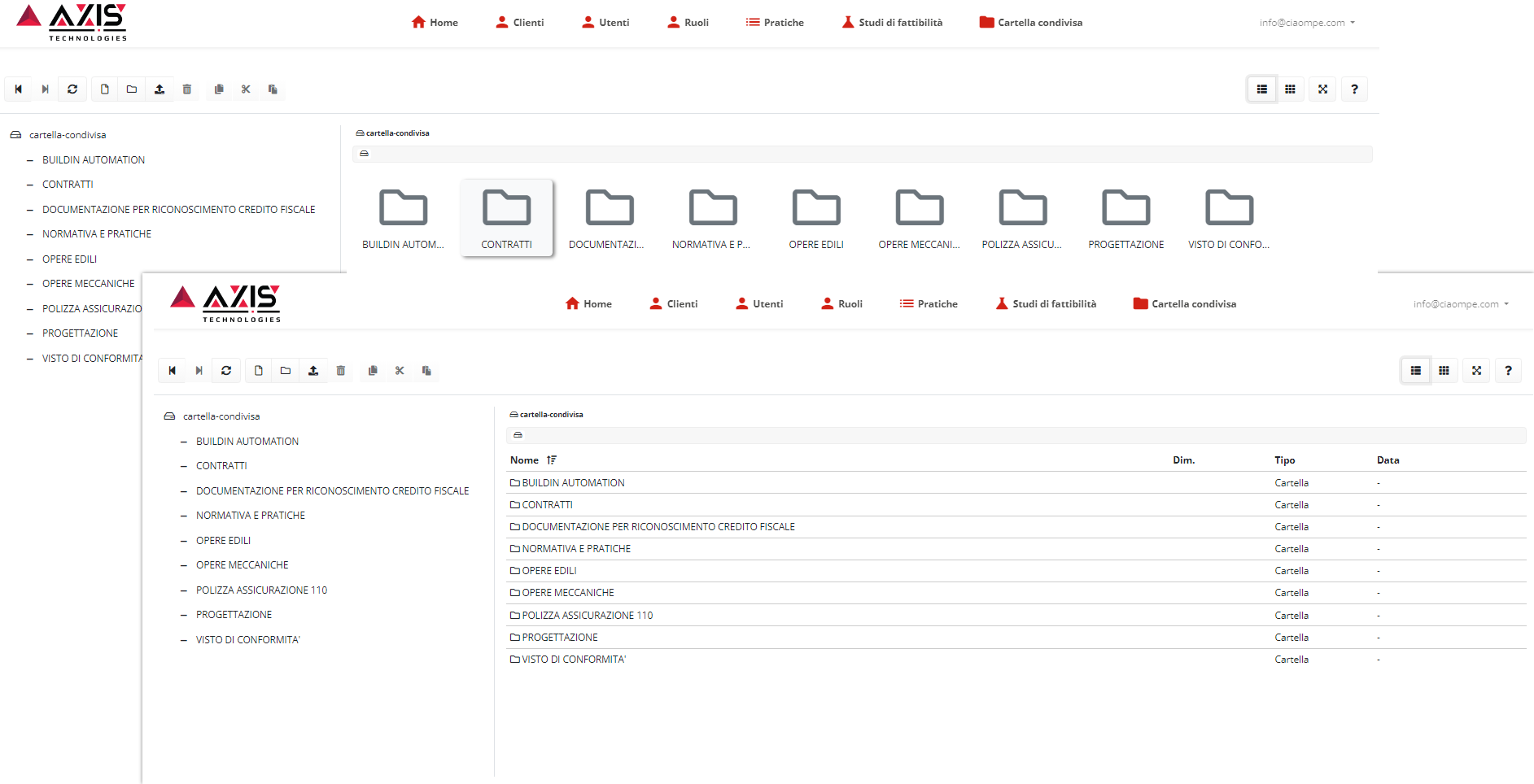 Ogni progetto, ogni sezione, ogni fase ha una cartella dedicata, ogni upload avviene sempre ed automaticamente nella cartella corretta, ogni volta che devi cercare qualcosa è sempre nel posto giusto. La collezione documentale semplice, intuitiva e potente che stavi cercando.